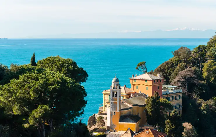 This stunning fishing village nestling in the bay in the shade of the pine trees is sheer perfection in pastel hues, and a haunt for the jet set. Ship at anchor. Water sports.