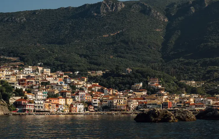 This picturesque hillside harbour town has superb views of the bay and the Ionian islands. From the covered walkway of the Venetian citadel, the grandiose views of this historical seaside setting are well worth the climb. Boat at anchor, water sports available.