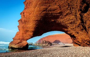 Pour beaucoup, Legzira est la plus belle plage du Maroc. Cette étendue de sable rose au sud d’Agadir a, il faut l’avouer, tout d’une œuvre d’art. Il vous suffira de descendre les 200 marches qui mènent au bord de l’océan pour admirer pleinement ses falaises rougeoyantes et ses majestueuses arches creusées par l’érosion. Pour finir votre journée en beauté, ne manquez pas le coucher de soleil pendant lequel les falaises se parent de splendides reflets incandescents.